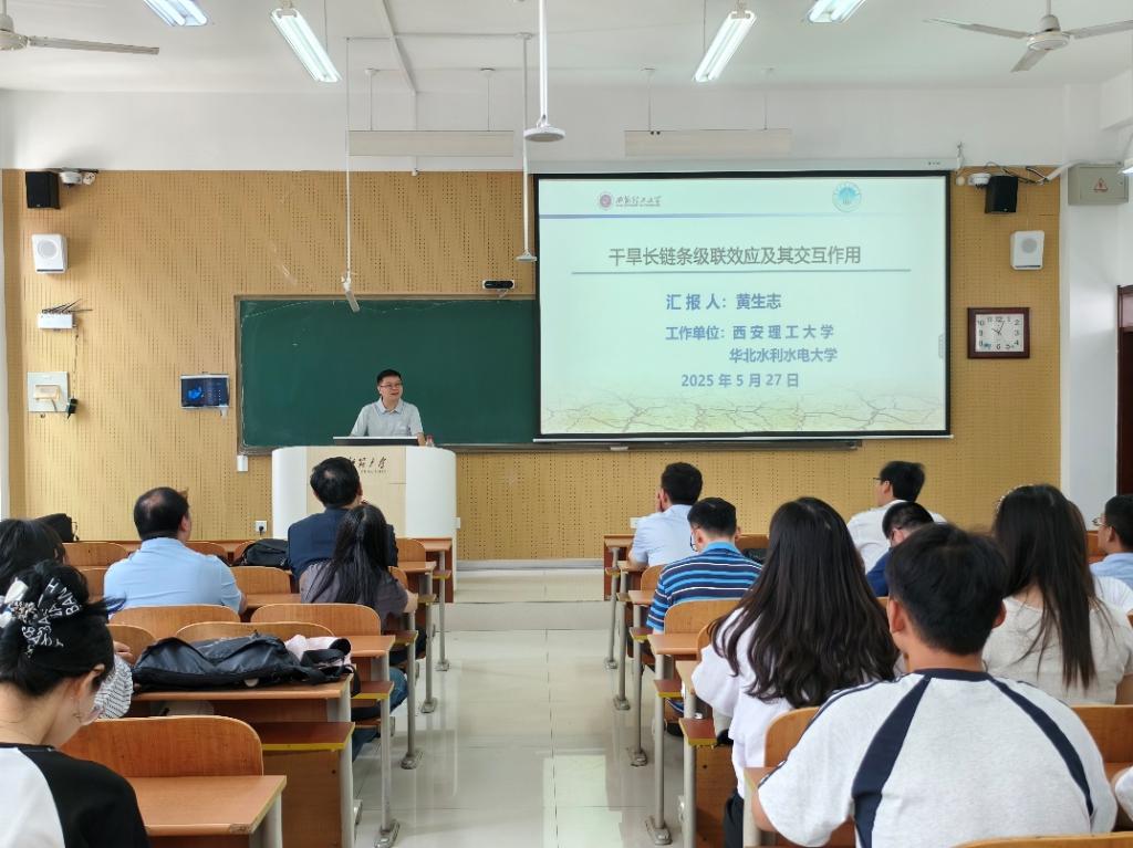 特邀国家万人青拔、华北水利水电大学水利学院院长黄生志教授做客“经纬讲堂·高端讲坛”,为学院师生作了题为《干旱长链条级联传递及其交互作用》的学术报告。学院相关教师及研究生参加报告会。报告会由老虎机