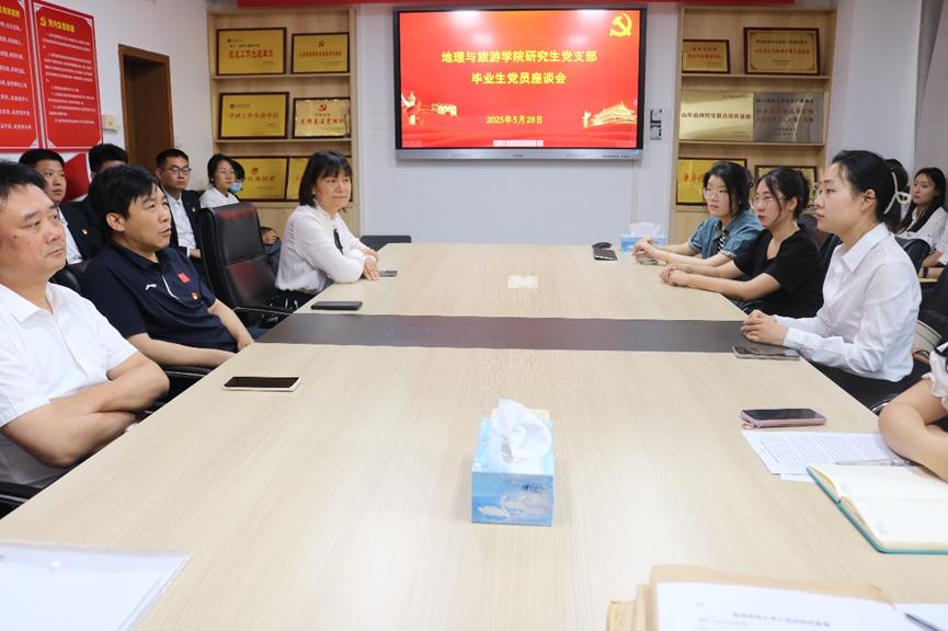 2025届研究生党员毕业座谈会在会馆2401会议室举行。学院党委书记苏占兵、党委副书记刘伟、研究生辅导员赵岩及全体毕业生党员参加会议。
